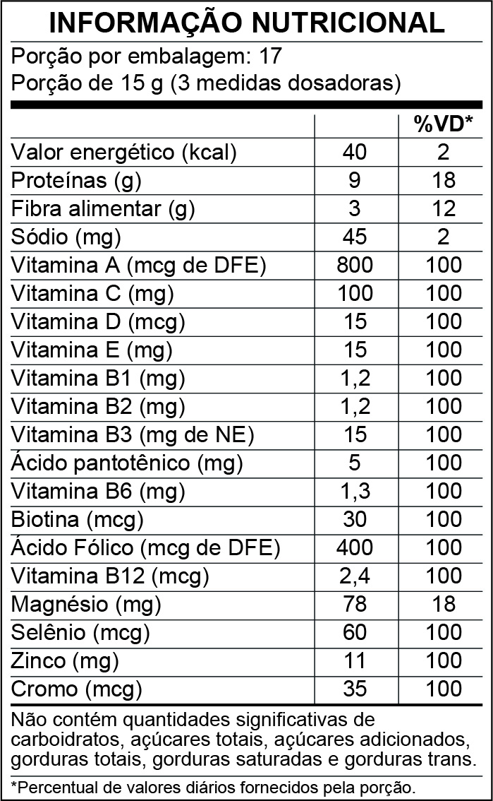 Dissolver 15g (3 medidas dosadoras) do produto em 200ml (1 copo) de água ou bebida de sua preferência e mexer até completa dissolução. Consumir uma porção ao dia, ou conforme orientação profissional.